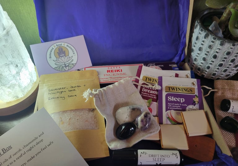 Discover curated wellbeing boxes filled with natural products to support your mental health and wellness journey.